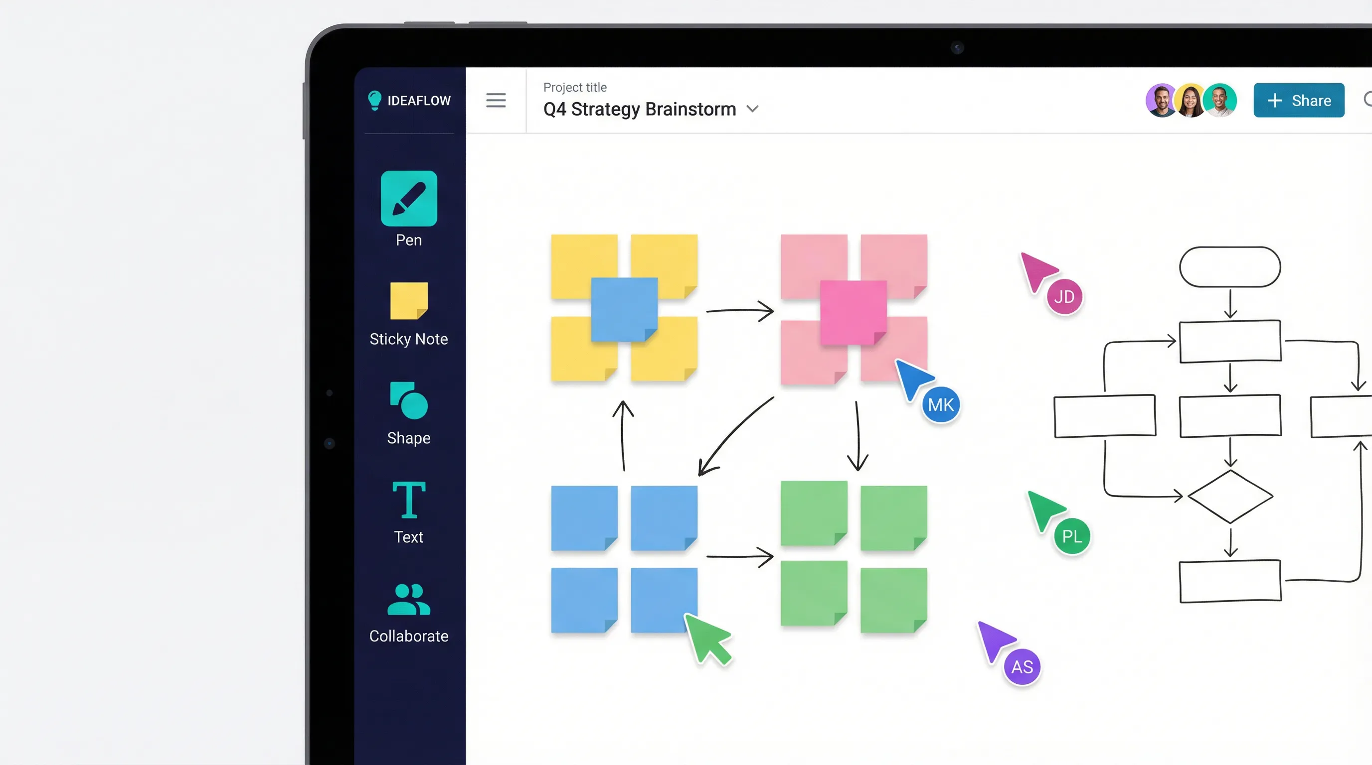 Brainstorming, Projektplanung und Teamarbeit – alles auf einer unendlichen Leinwand. Einfach, intuitiv und ohne Einarbeitungszeit.